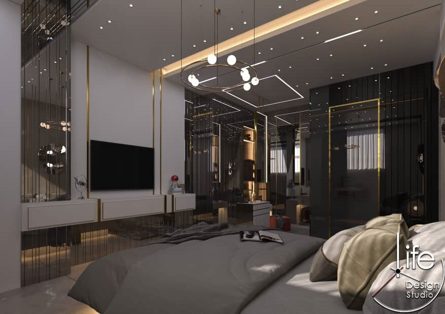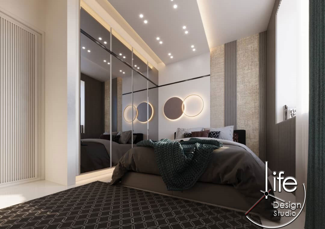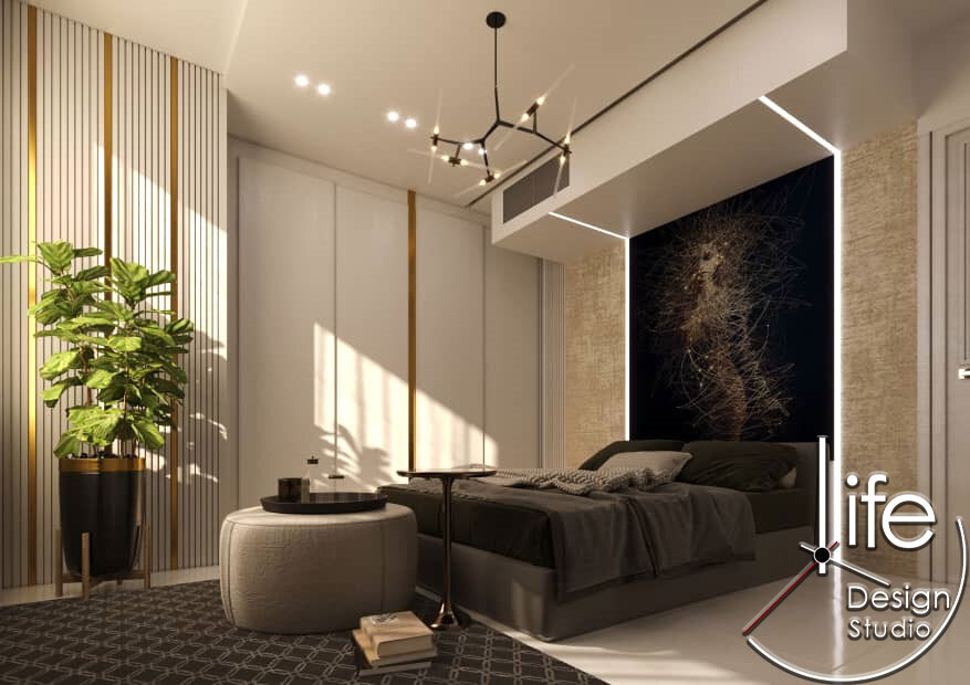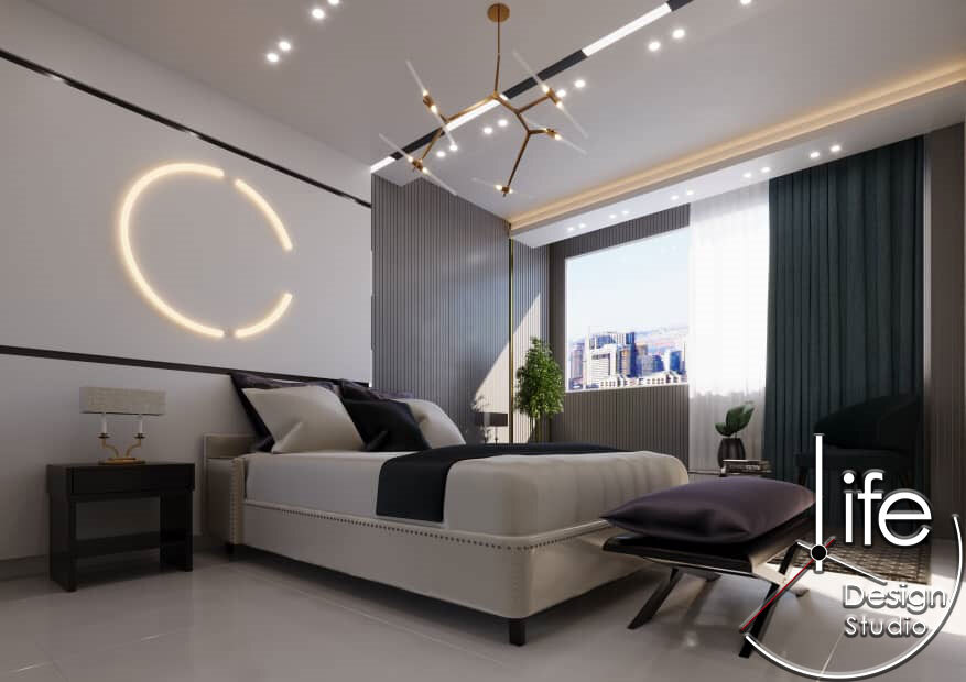 این فضای مسکونی نمونهای از هماهنگی بینقص میان طراحی مدرن و سادگی مینیمال است. اتاق خواب با انتخاب پالت رنگی خنثی و ترکیب آن با جزئیات هندسی، فضایی آرام و در عین حال پویا ایجاد کرده است.