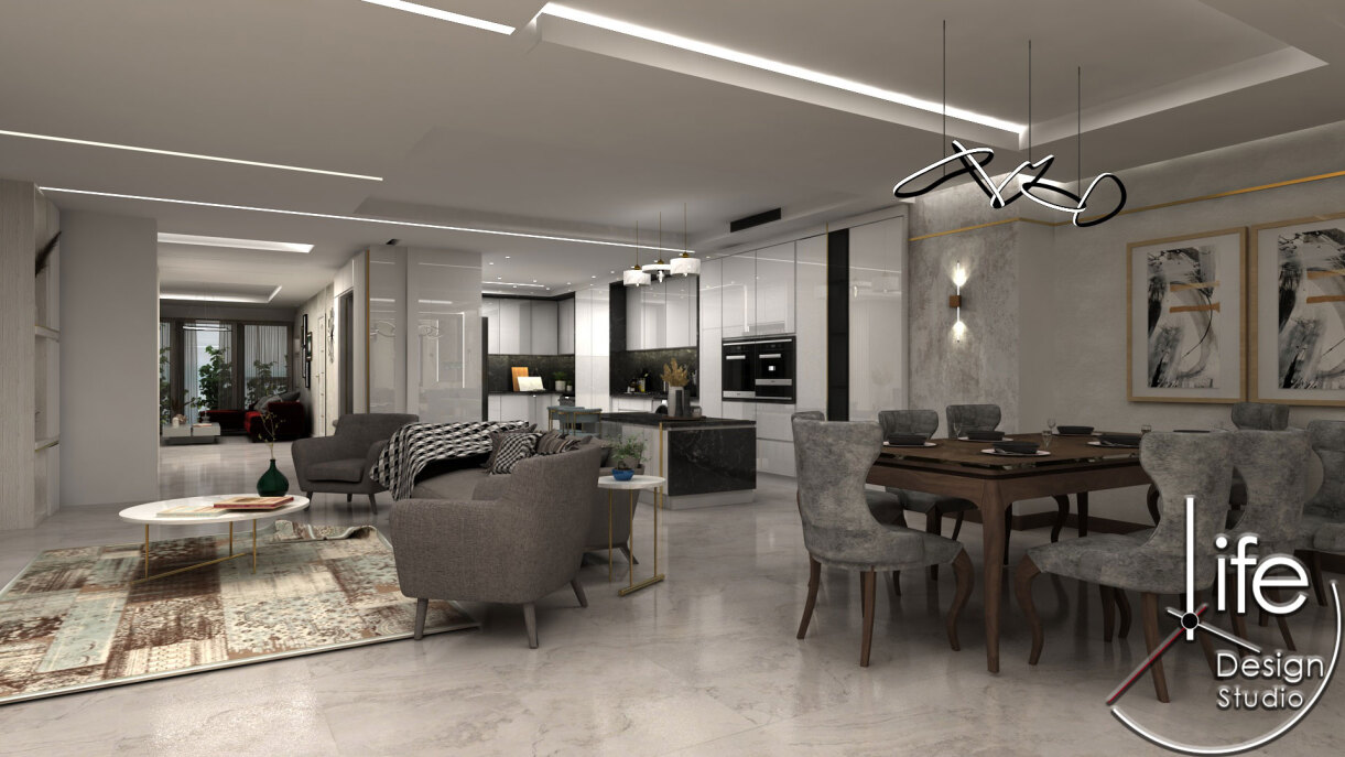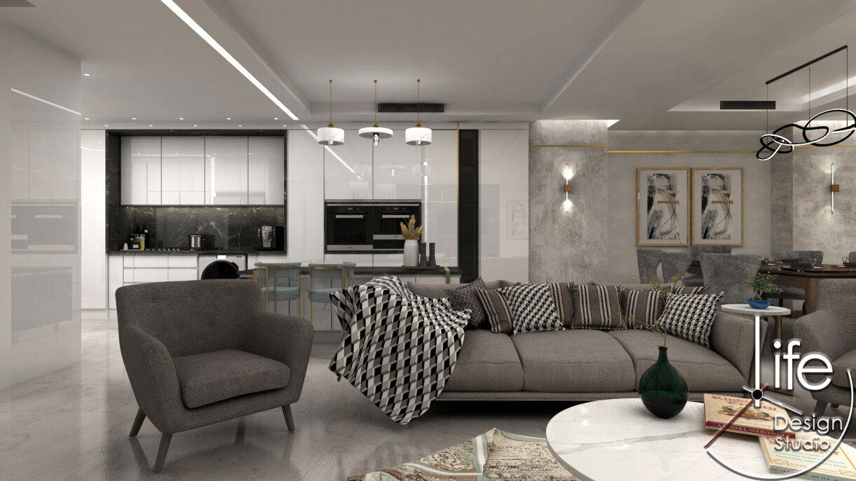 این پروژه یک فضای داخلی مدرن و مینیمال را به نمایش میگذارد که بر پایه ترکیب هوشمندانه رنگهای خنثی، متریالهای باکیفیت و نورپردازی هنرمندانه طراحی شده است.