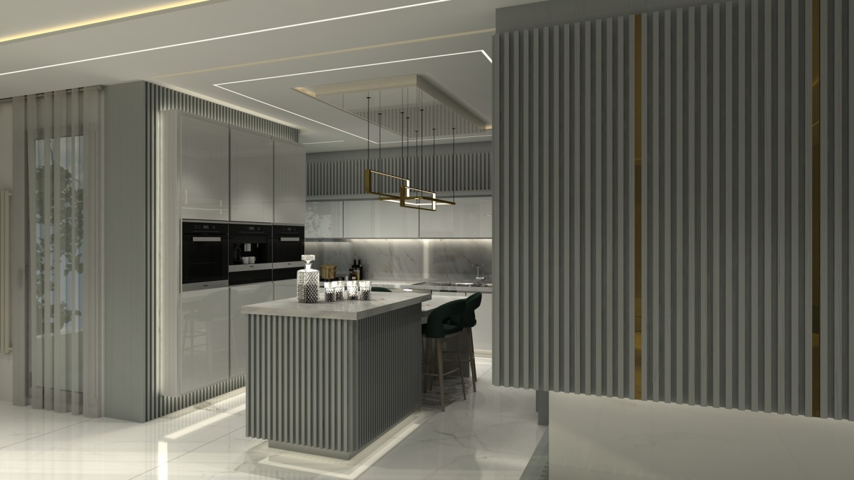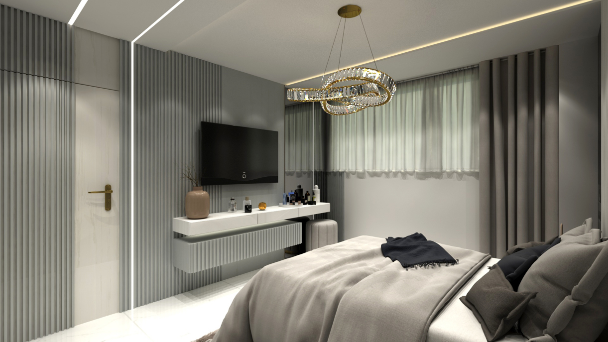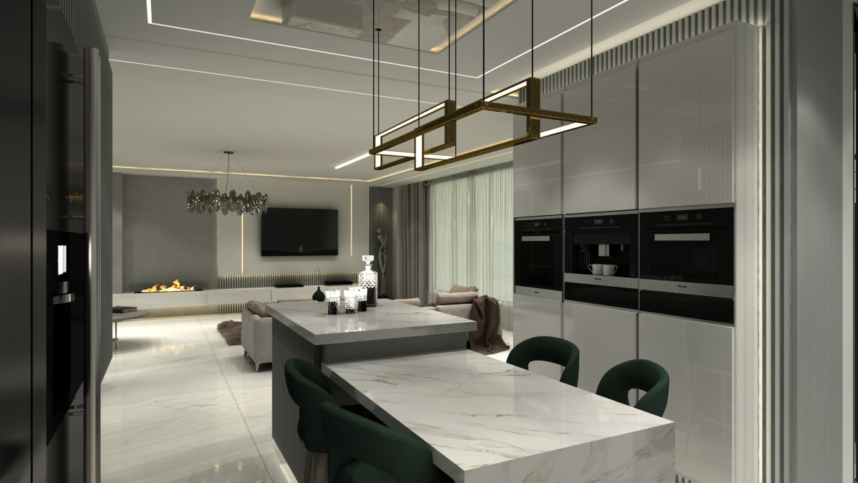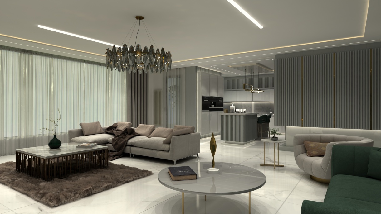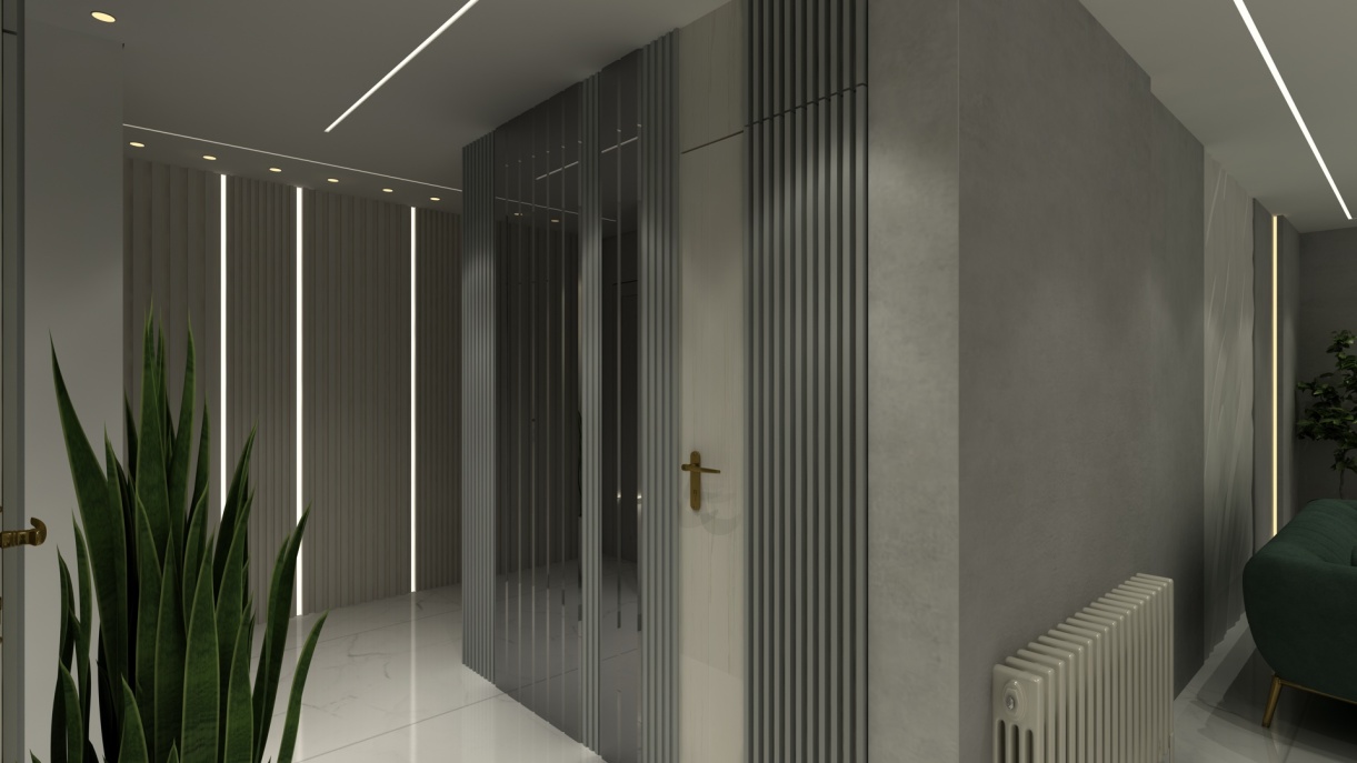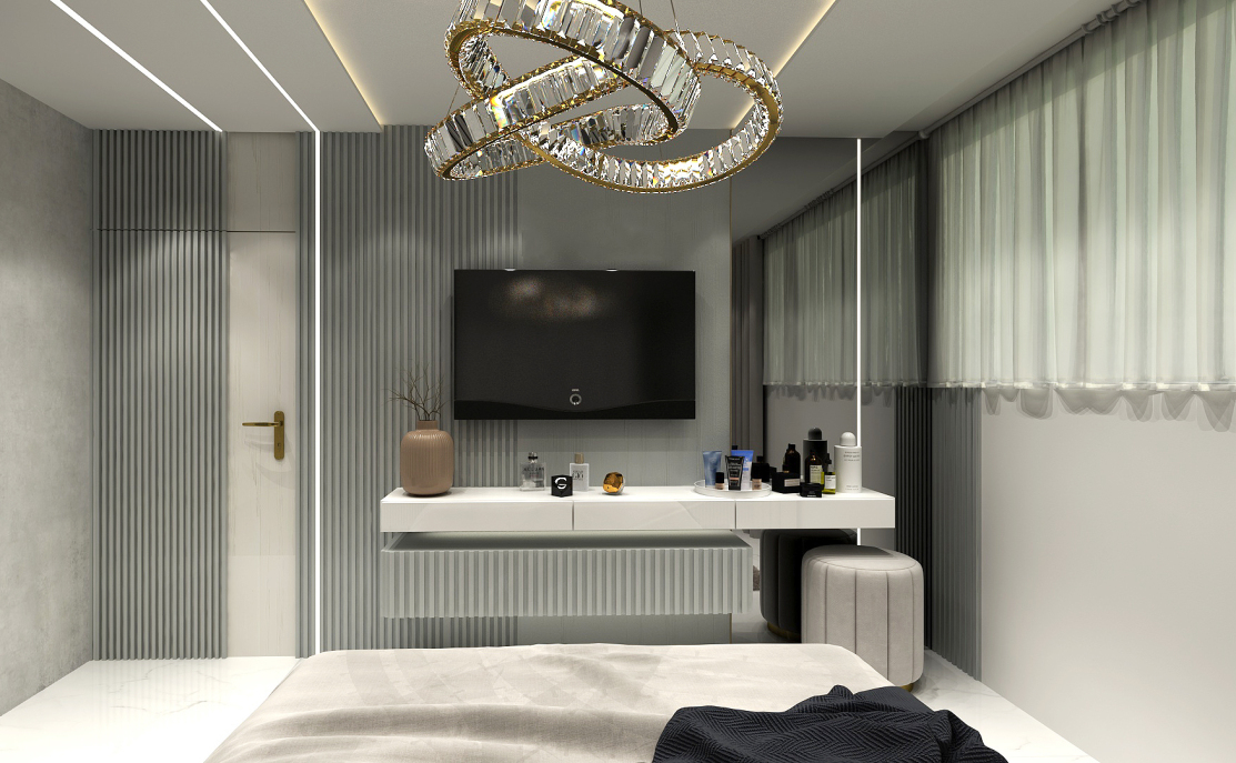 این فضای مسکونی با بهره‌گیری از پالت رنگی خنثی و طراحی مینیمال، محیطی دنج و مدرن را برای ساکنین فراهم کرده است. استفاده از نورپردازی خطی، متریال‌های لوکس و جزئیات منحصر‌به‌فرد، حسی از ظرافت و آرامش را در فضا القا می‌کند.